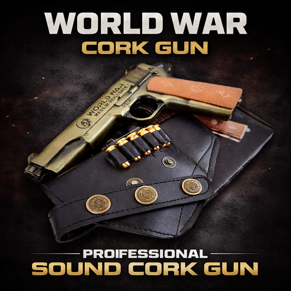 Experience the thrill of a classic battlefield-style toy with the World War Cork Gun Set. Designed with a realistic vintage look, this sound cork gun delivers fun, safe, and engaging play for kids and collectors alike. The set includes everything you need for extended action—60 sound corks, 6 golden dummy bullets, and a stylish protective cover.